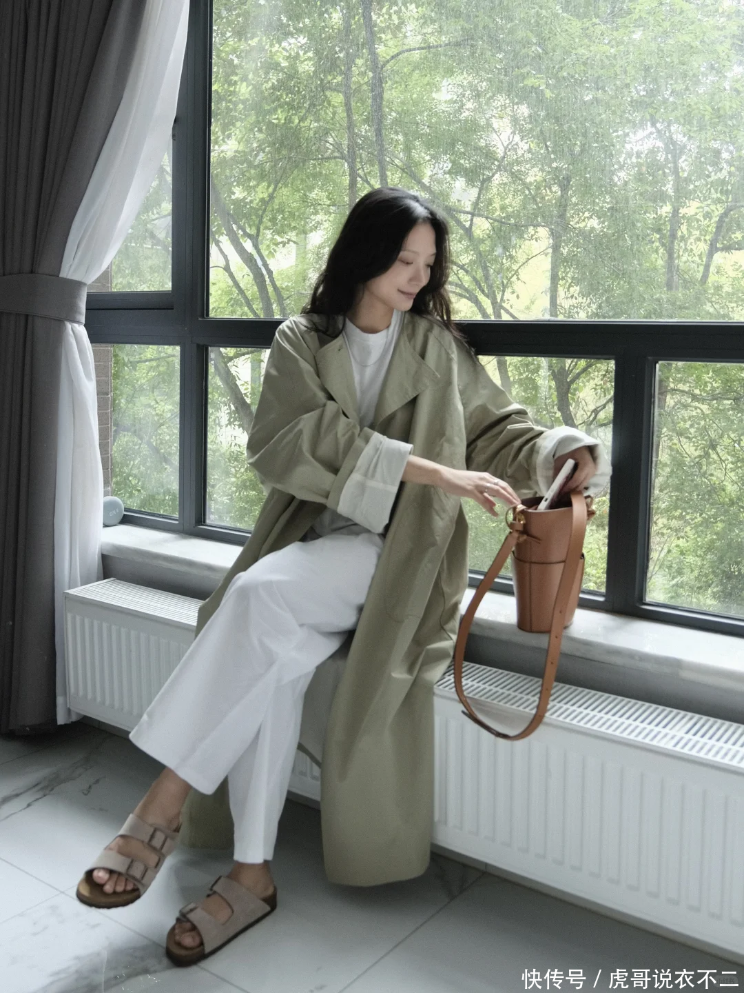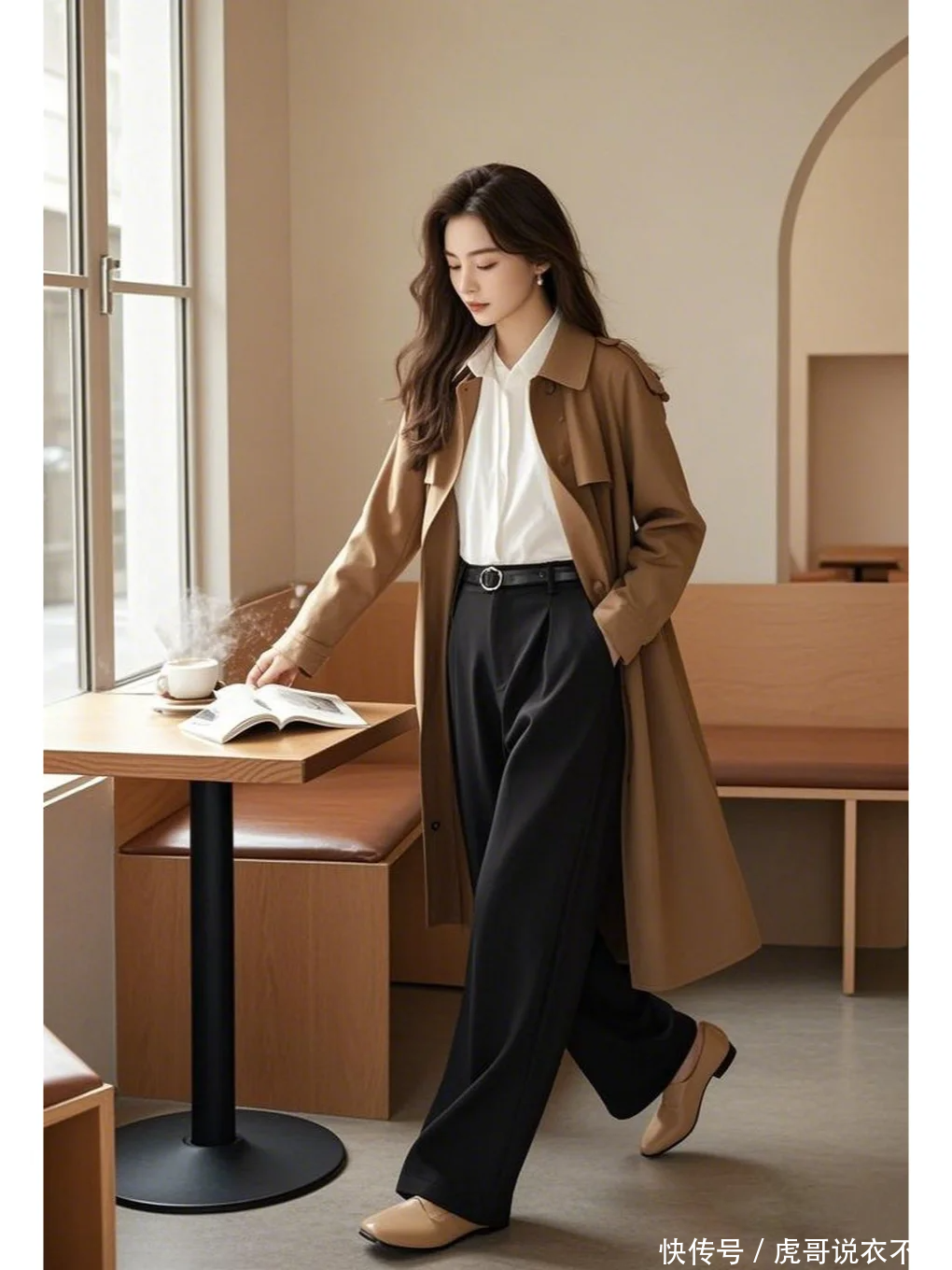 二、风衣搭配阔腿裤:遮肉显瘦,优雅高级