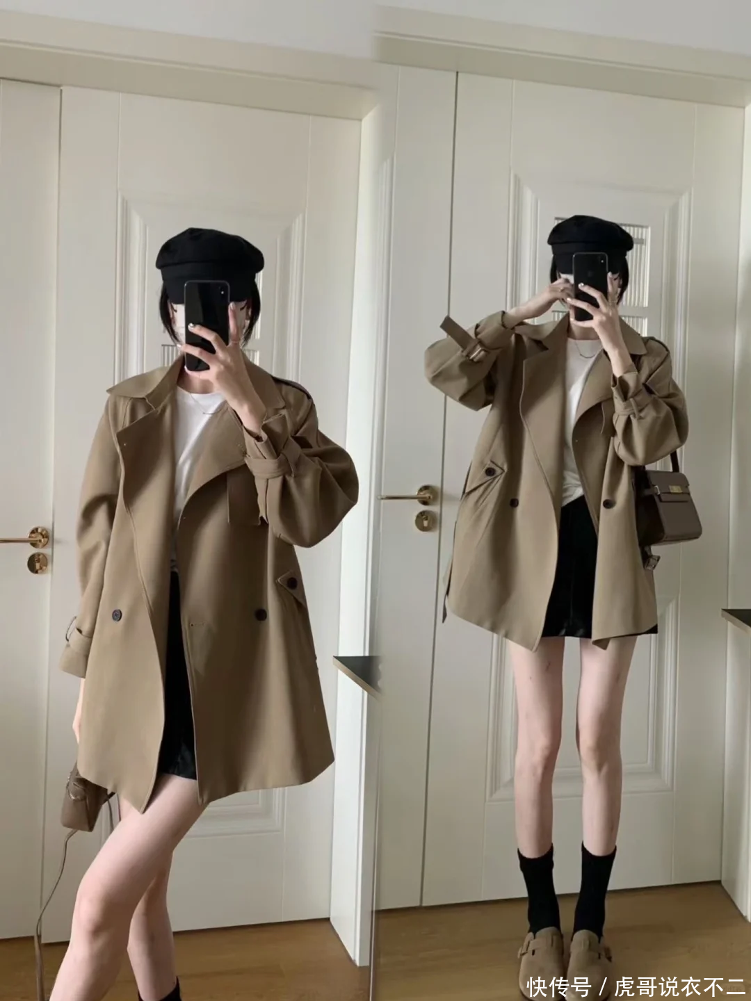 下衣失踪的穿搭法则,在春季尤为适用,它能巧妙地露出腿部,视觉上拉长身形,让你秒变大长腿。选择一件长度适中(一般在大腿中部以上)的风衣,内搭一件短裤或超短裙,再配上一双简约的小白鞋或是运动鞋,既保持了春日的轻盈感,又不失时尚态度。